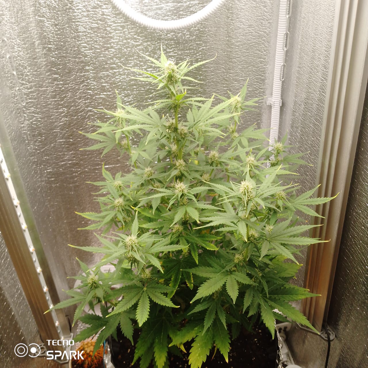 Досталась по случаю CINDERELLA. Проросла быстро,поперла на Веге как ракета.Дальше не умышленно придушил растишку,добавил света,но добавилась и температура... МарьИванна стресанула,нижние крупные листья пожелтели ,рост прекратился... Думал ппц, всё пропало!Но нет ,сорт оказался очень живучим.Сделал нормальную температуру и через пару дней поперла с новой силой. На фото месяц, зацвела! Если бы не ошибка,думаю куст был бы ещё больше... Созреет выложу.
