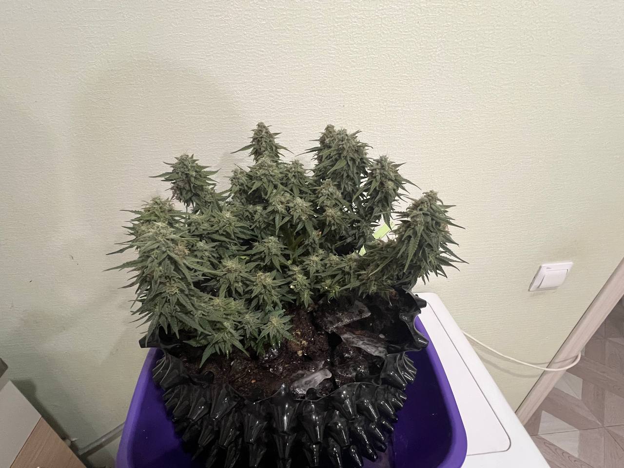 Быстро и активно растет через 3 недели начался пребывает, спустя месяц уже ожидается почти цветение. Почти не пахнет пока что удивительно.