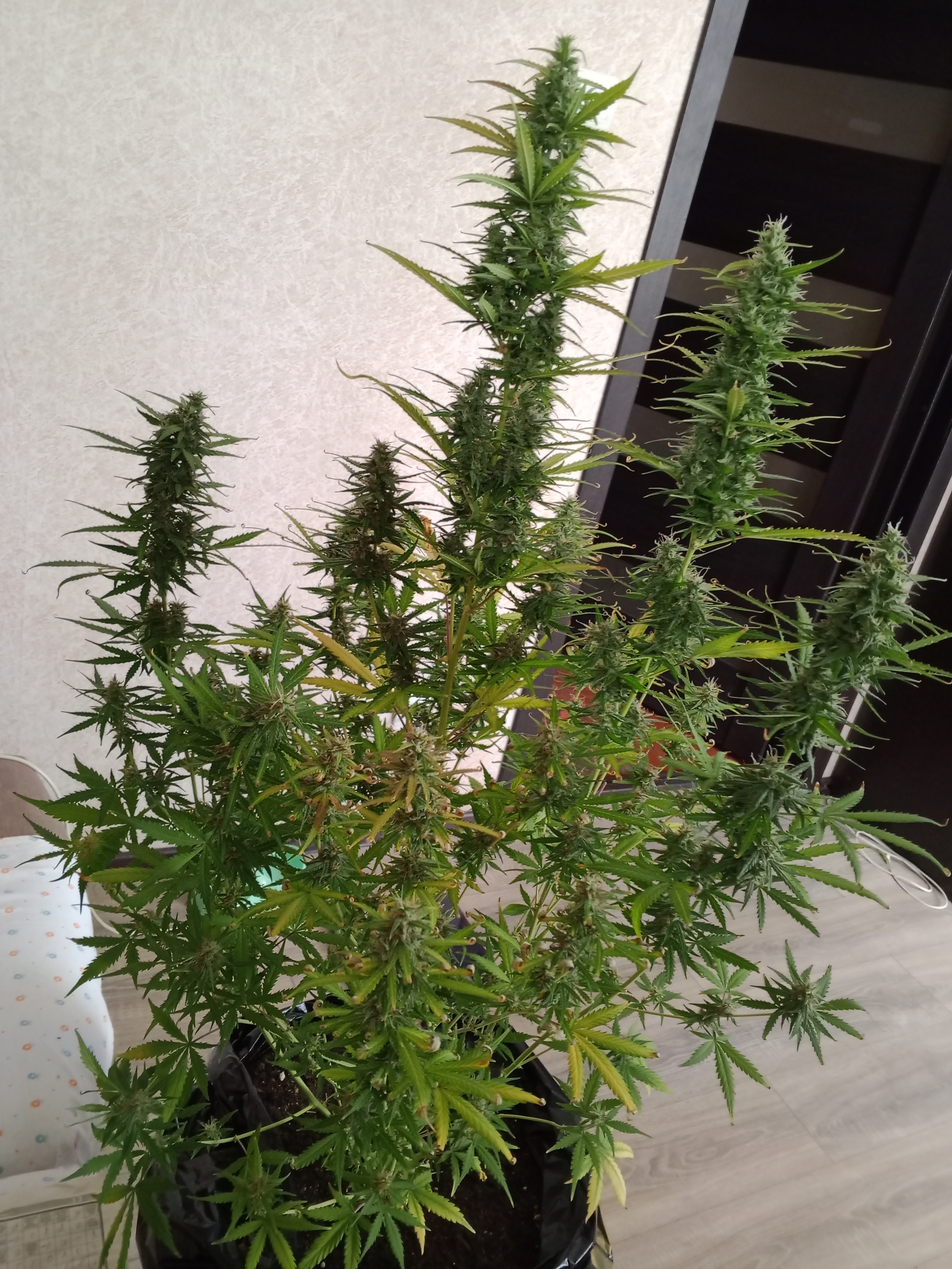 Один из моих любимых автиков. Живучий, скосил куст, случайно оторвал центральную колу, оставив первые 4 побега. Но горила справилась, дала еще 22 небольших побега и по итогу вымыхала в такой пышный куст, что если бы случайно не резанул то урожай был бы мега большим, но и так дала большем чем любой другой автоцвет) На счёт эффекта, более мощного пока еще ничего не курил, давал пробовать своим, все присели с колпака)))