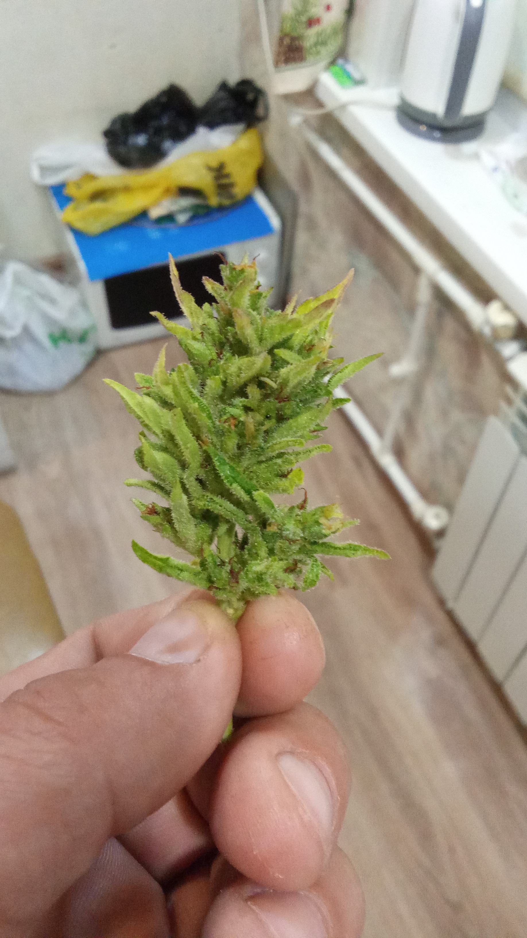 Один из моих любимых автиков. Живучий, скосил куст, случайно оторвал центральную колу, оставив первые 4 побега. Но горила справилась, дала еще 22 небольших побега и по итогу вымыхала в такой пышный куст, что если бы случайно не резанул то урожай был бы мега большим, но и так дала большем чем любой другой автоцвет) На счёт эффекта, более мощного пока еще ничего не курил, давал пробовать своим, все присели с колпака)))