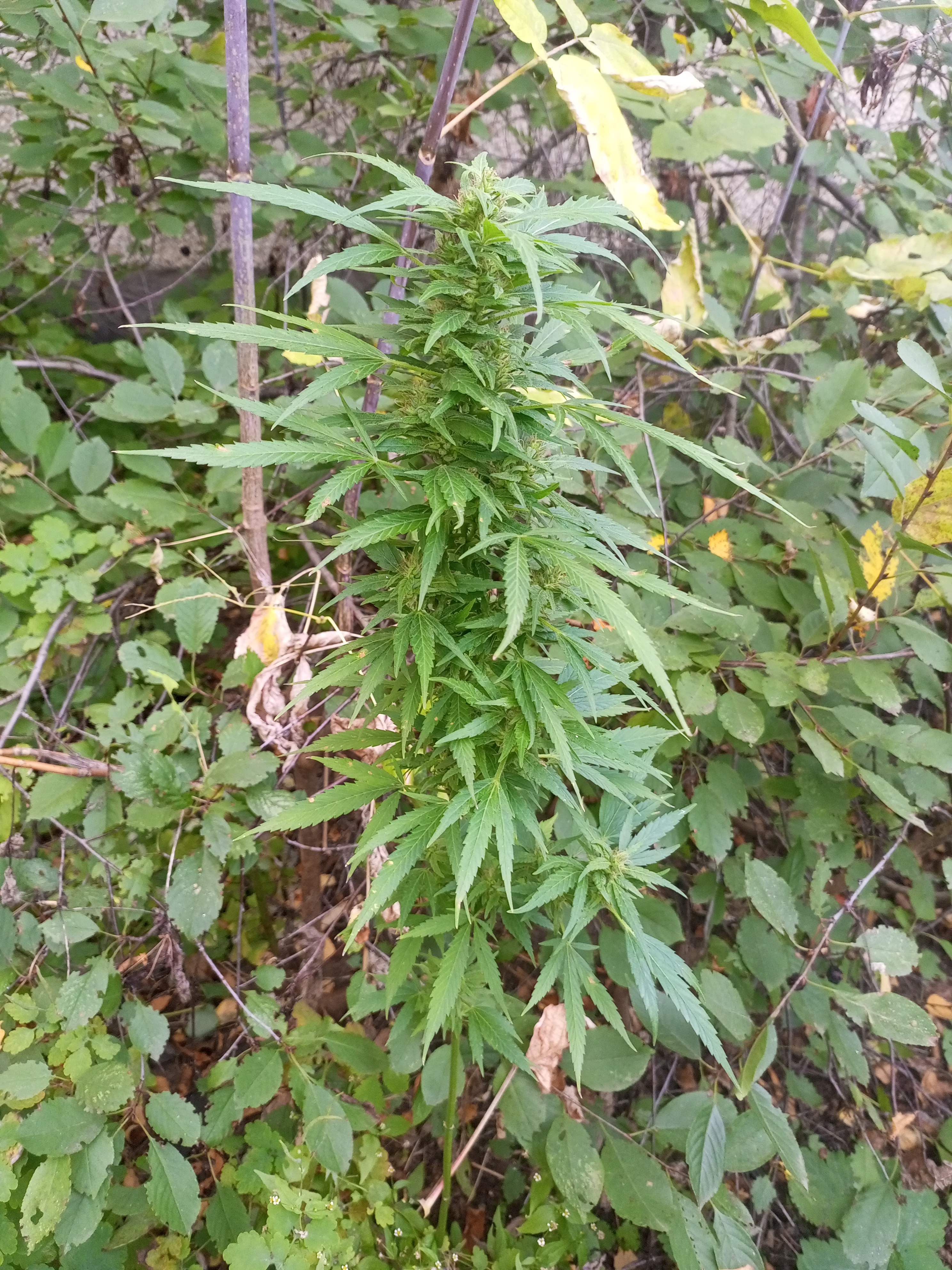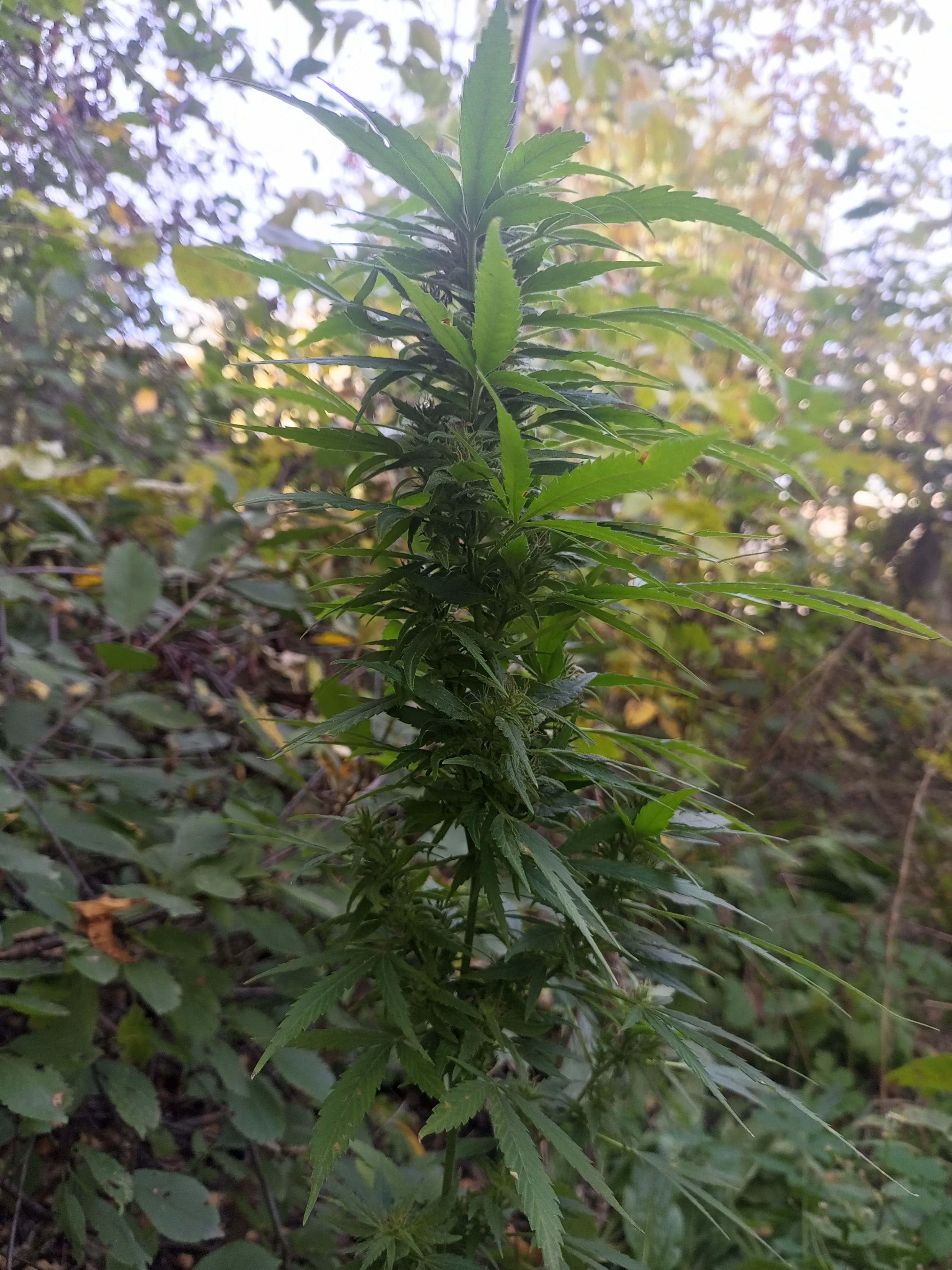 В начале лета ради прикола посадил пророщенное семечко в палисадник возле дома в заросли вишни: просто сделал палочкой углубление в земле и положил семечко с хвостиком. Недавно вспомнил про него и посмотрел. Вырос метр высотой, но первые полметра растения просто голый ствол, а вот выше уже кое-что имеется). Сорвал снизу самую маленькую шишечку и она так неплохо торкнула. Мало того, что шишечки пахнут и липкие, еще и листья очень липкие. И пусть с него не получится много по граммам, думаю не больше 10-15 сухого, но и усилий к этому никаких не прилагал: посадил семечку и всё на этом