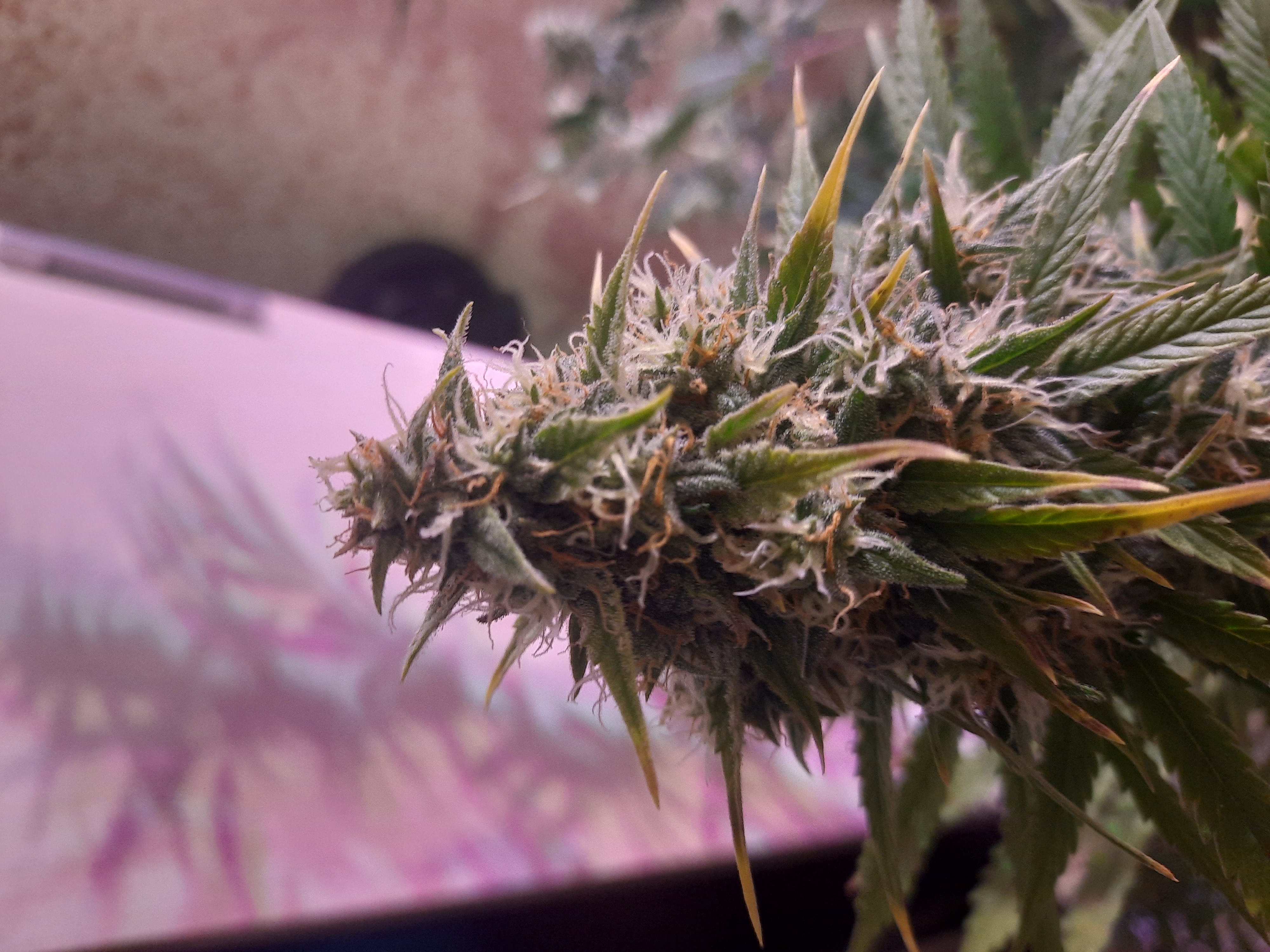 Получал бонусом, Сорт конечно огонь, сажал в индоре, бокс делал сам, освещение 3 фито лампы и 3 лед лампы, рос вначале не особо,забыл про обдув, после установки вентилятора, и как поднял температуру до 28° начал себя хорошо чувствовать,ещё недели 2 цветения минимум, стрыг от лишних лопухов, лопухи не плохо так мажут)
