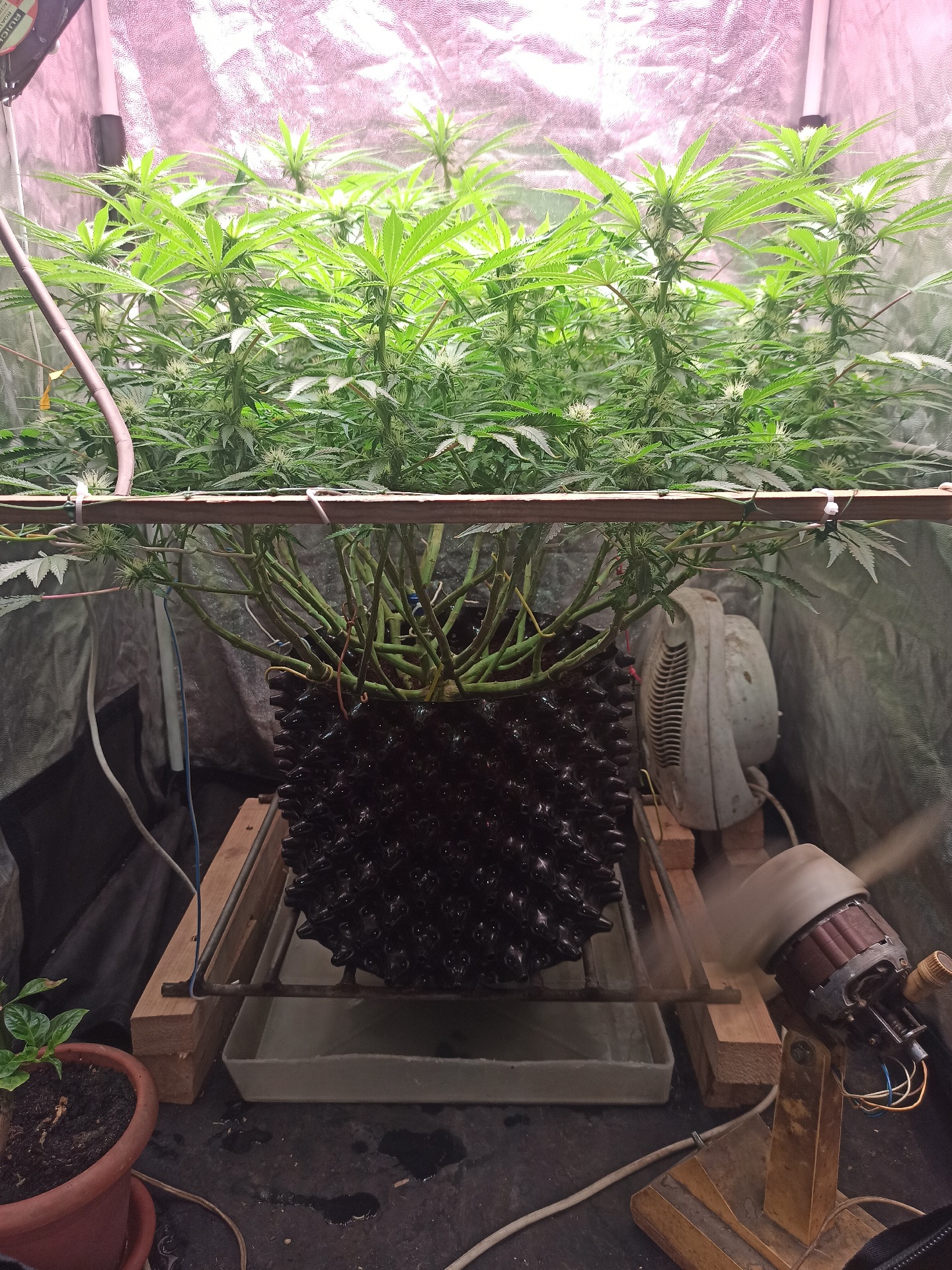 Сорт как мне показалось лучше для индора, я свой куст выставил под конец периода на улице, так он вышел на вегетацию вновь (ревегетация) и ещё прибавил в росте. Но в целом не особо большой куст, опять же из-за отсутствия опыта не все шло правильно температура и тд но он вырос дожил до харва. Во время цветения завелась плодожорка в столе дырка я его иглой проткнул и норм растиха даже не болела сорт живущий