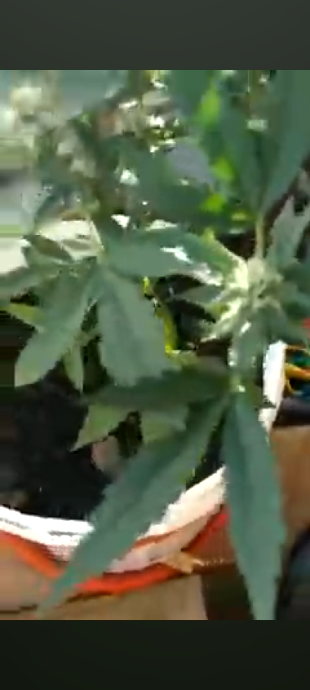 Впервые подогнул стебель,эффект действительно сативный. Из этого куста вышло примерно такое же количество ,что и от гориллы.