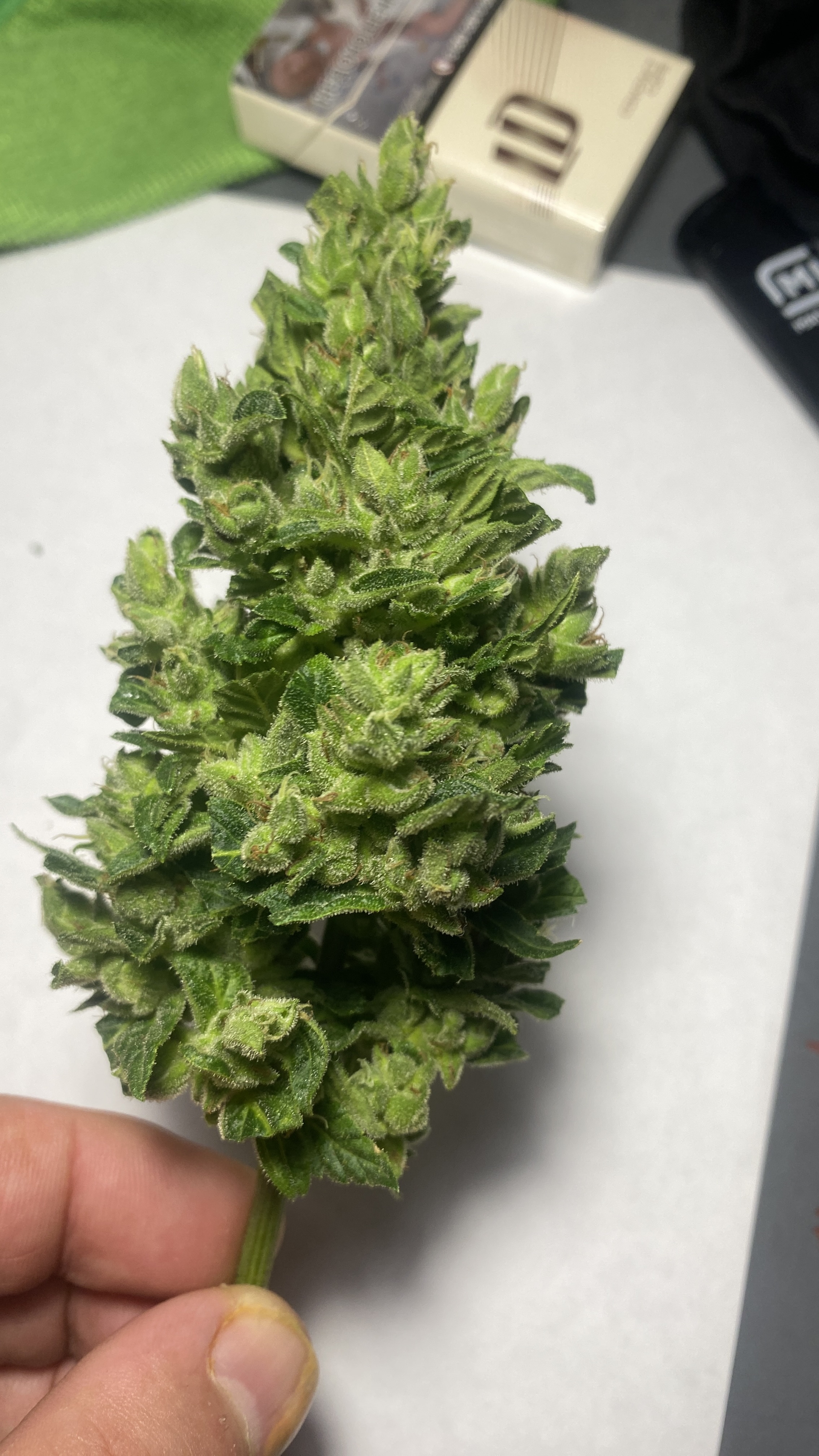 55 день от каски, мини-стелс бокс, девочка чувствует себя хорошо, хорошо цветет и очень слабо пахнет, хотя трихомы уже вовсю полезли. Запах еле еле чувствуется,